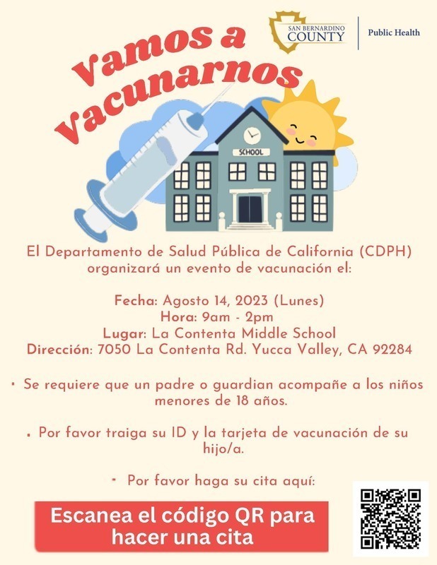 Appointment Link for La Contenta Middle School on 08/14/23