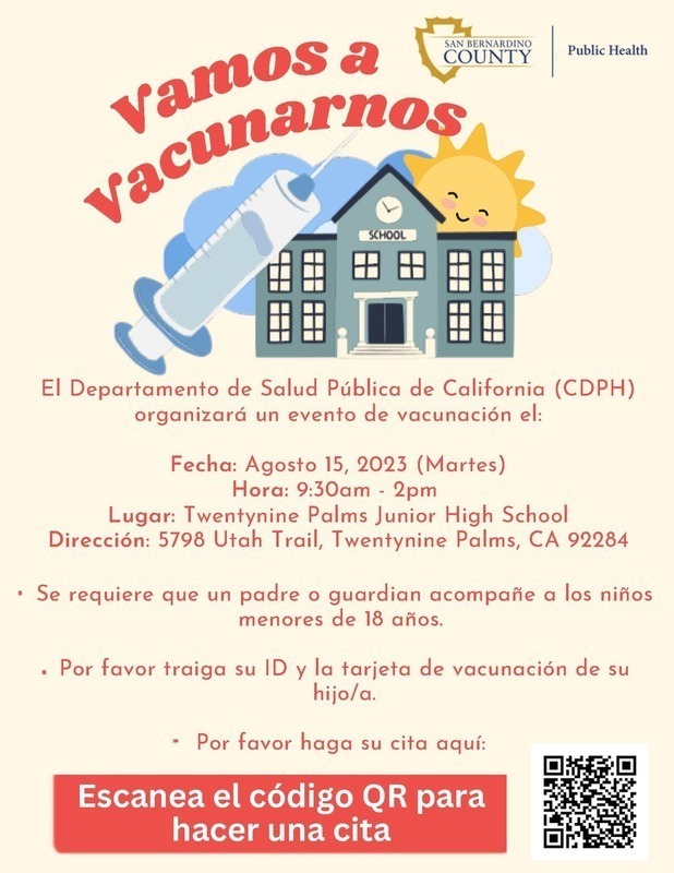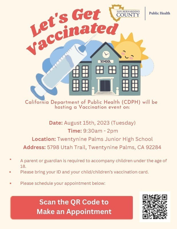 Appointment Link for Twentynine Palms Junior High School on 08/15/23
